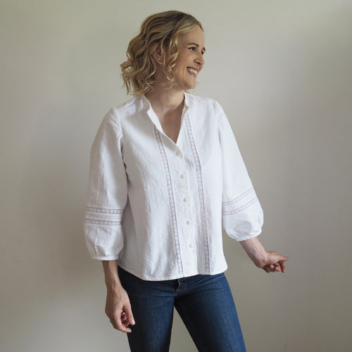 The Nepheline Blouse Sewing Kit is a beautiful breezy make with soft shaping, a collarless neckline and those lovely sleeve details that give it such gentle charm.