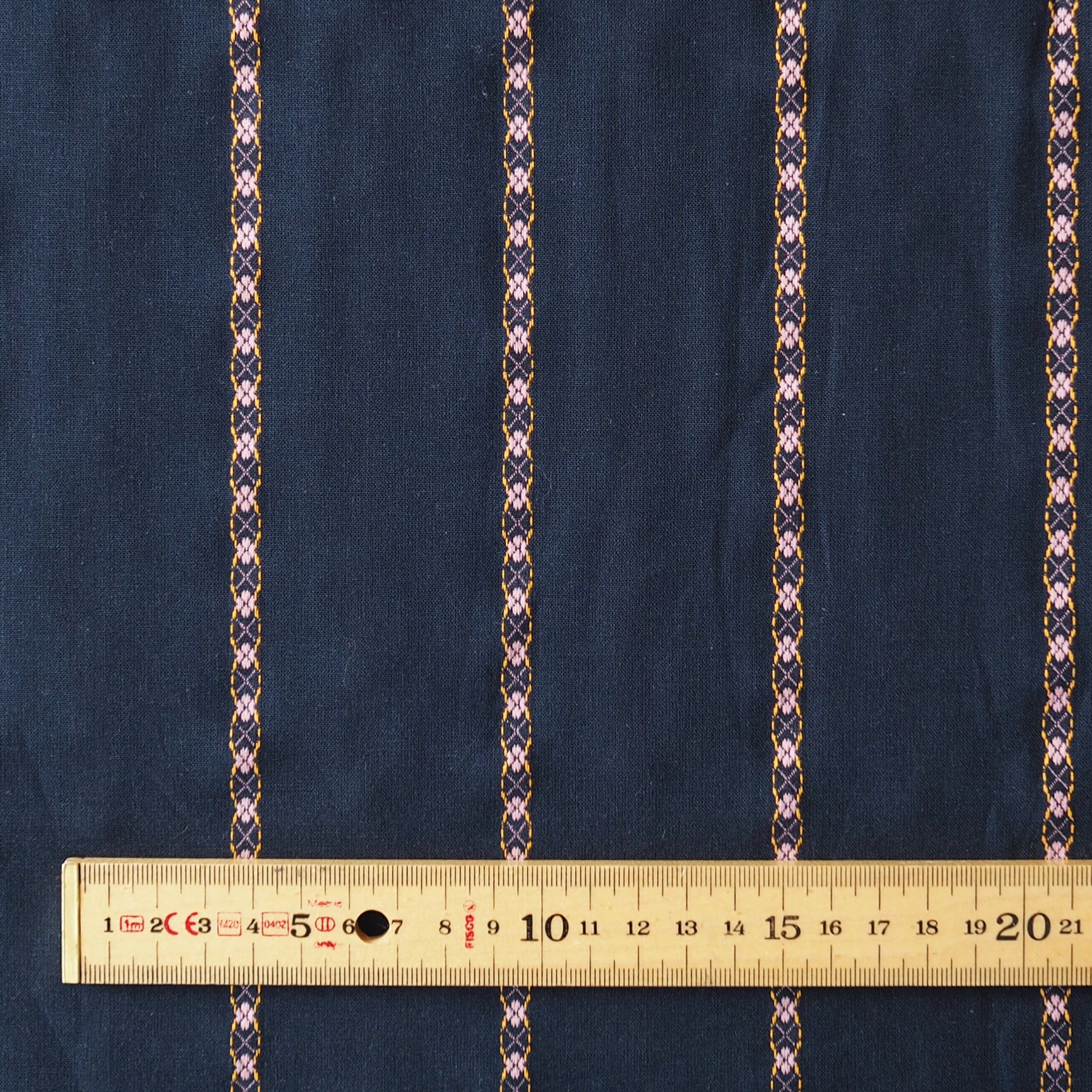 Navy Floral Chain Stripe Cotton Jacquard Fabric