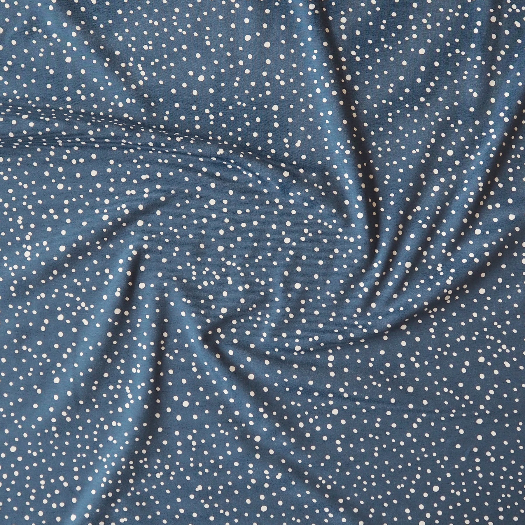 Dusky Blue Polka Cotton Jersey Fabric, Oeko-Tex Certified