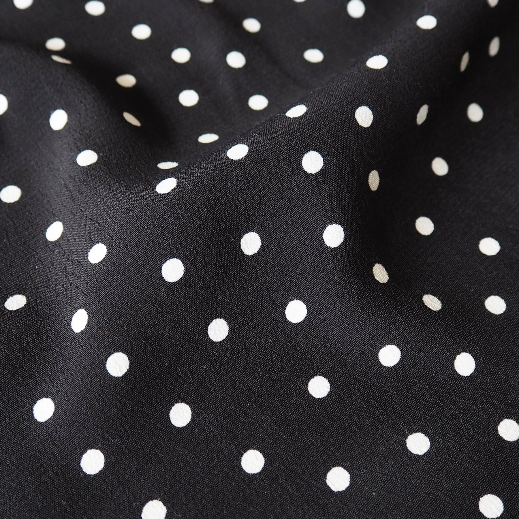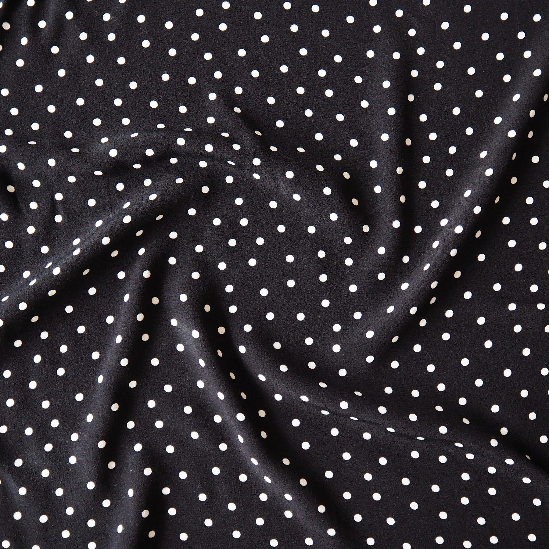 This dressmaking fabric is printed on a soft, drapey viscose crepe dressmaking fabric making it perfect for creating elegant dresses, skirts, wide leg trousers and blouses. Why not mix and match the different Vivian colourways and spot sizes to make a unique outfit.