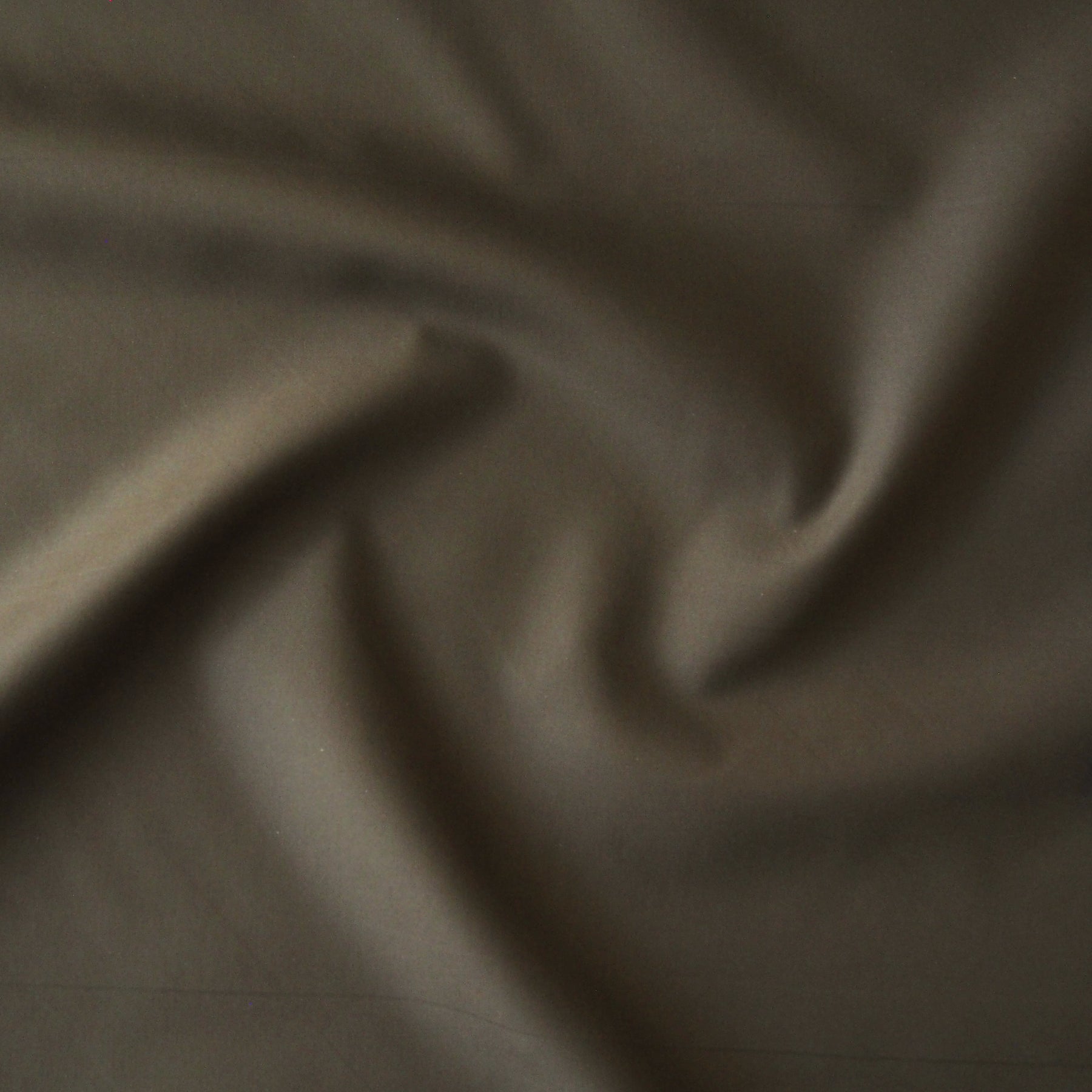 Khaki waxed cotton fabric with water-resistant finish for outerwear sewing.