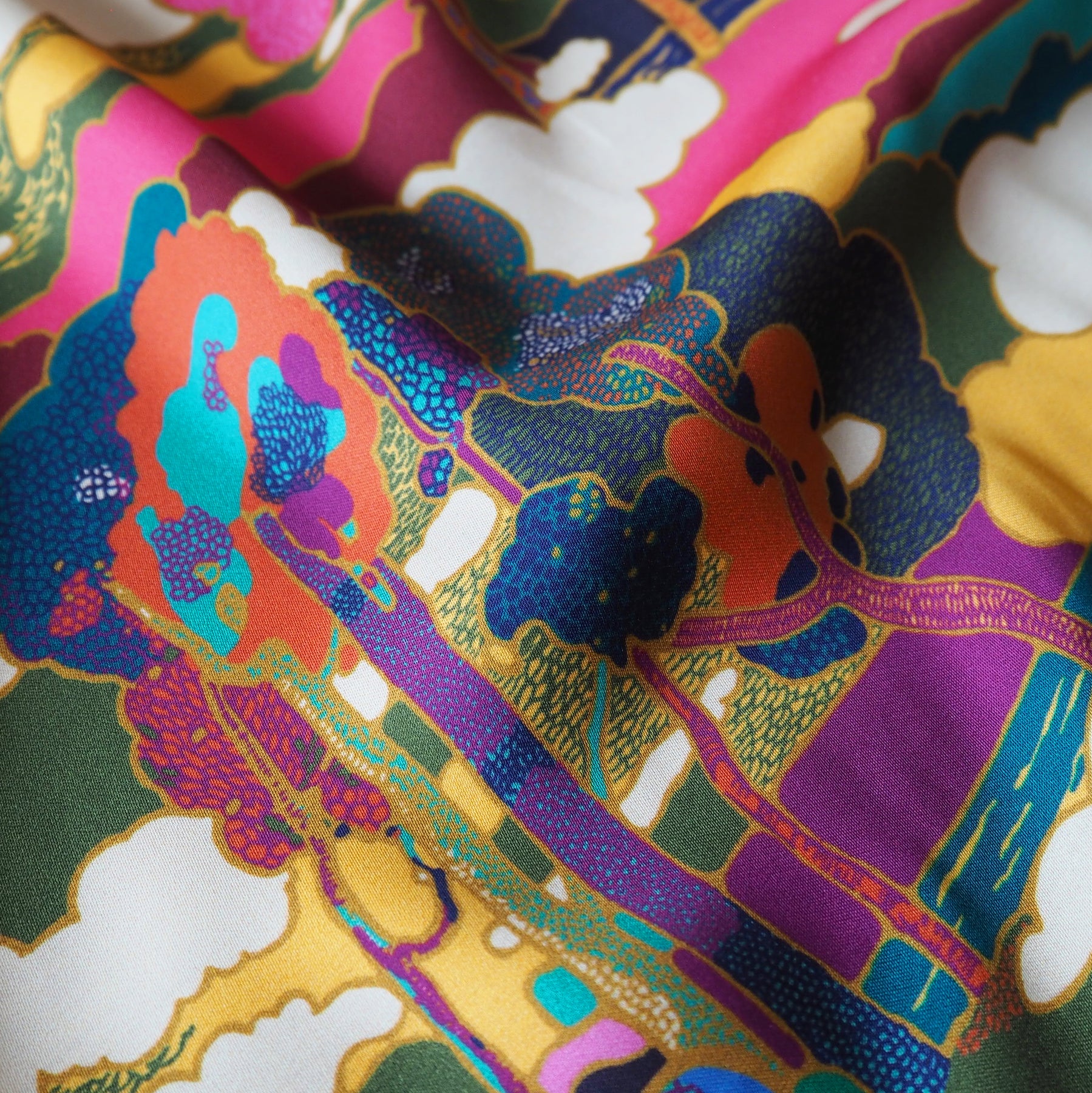 Liberty viscose satin Prospect Road A fabric, soft draping satin with botanical print.