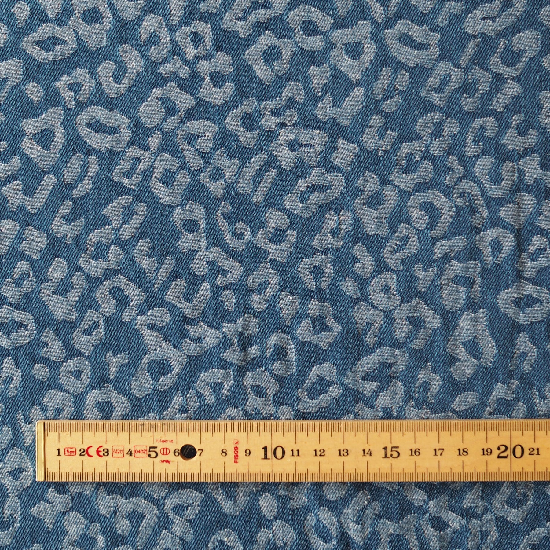 Mid Blue Leopard Jacquard Cotton Denim Fabric