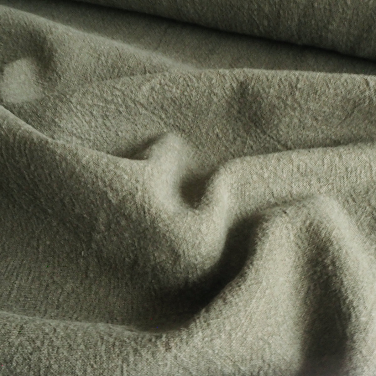 Muted Olive Textured Ramie Linen Blend Fabric – soft green linen cotton for dressmaking