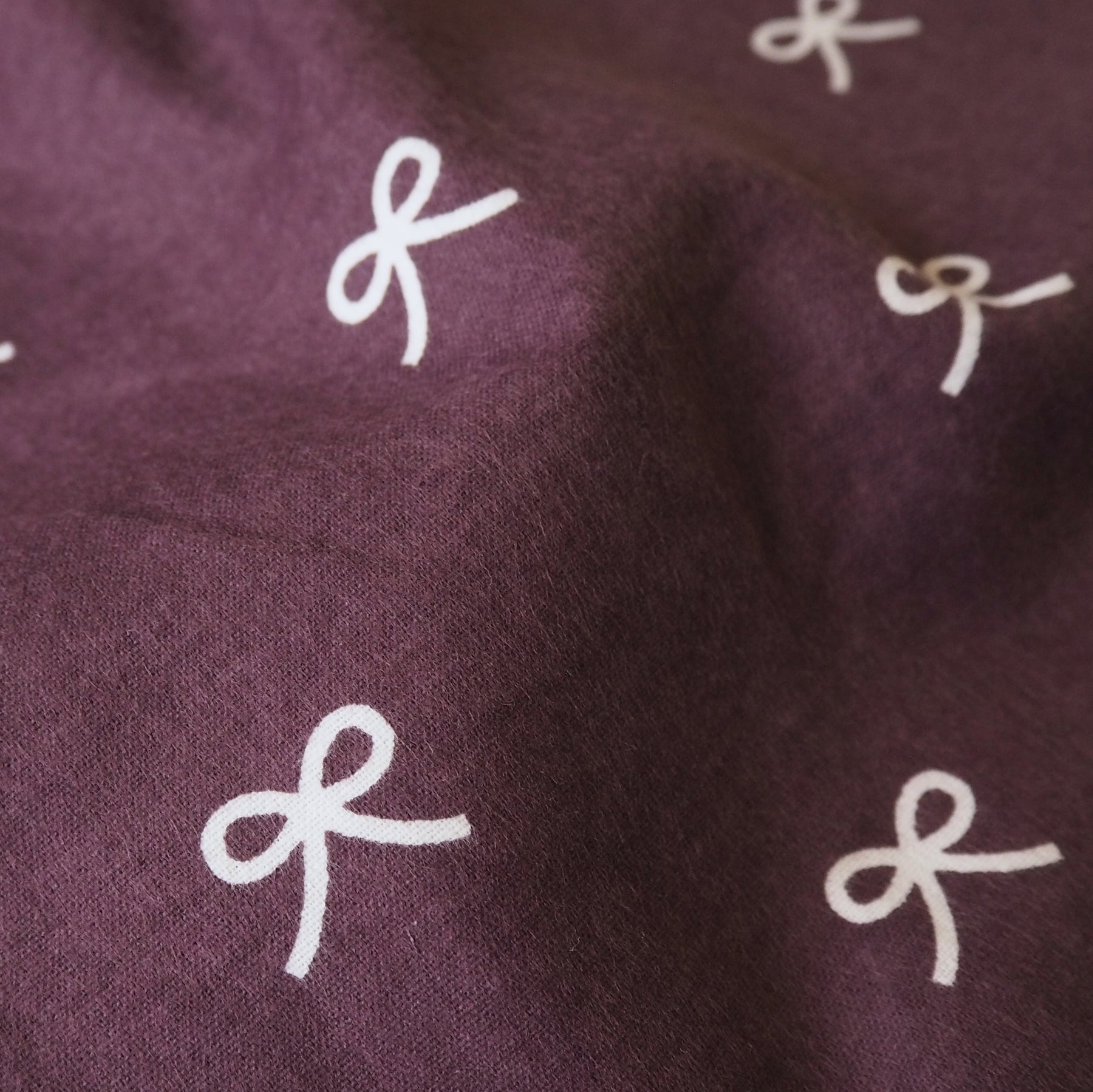 This playful print features petite bows in white on a plum coloured background, creating a sweet, gentle aesthetic that’s perfect for little ones.