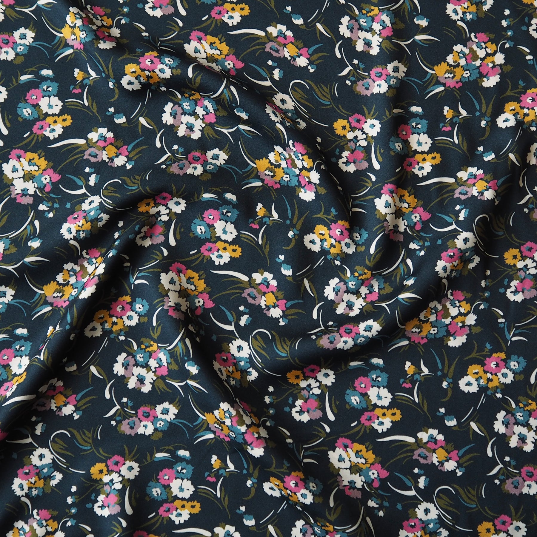 Liberty Bickington viscose satin Leah B fabric, smooth floral satin for dressmaking.