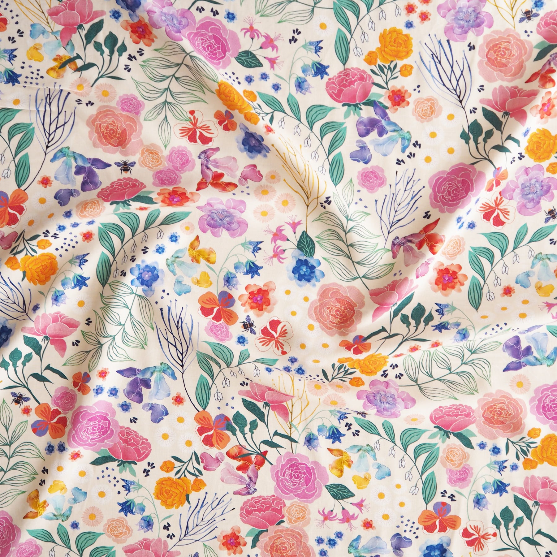 Our Cream Bee Happy Blooms Viscose Poplin is a Guthrie & Ghani exclusive - a soft, breathable fabric that perfectly blends elegance and playfulness in a charming floral bee design.