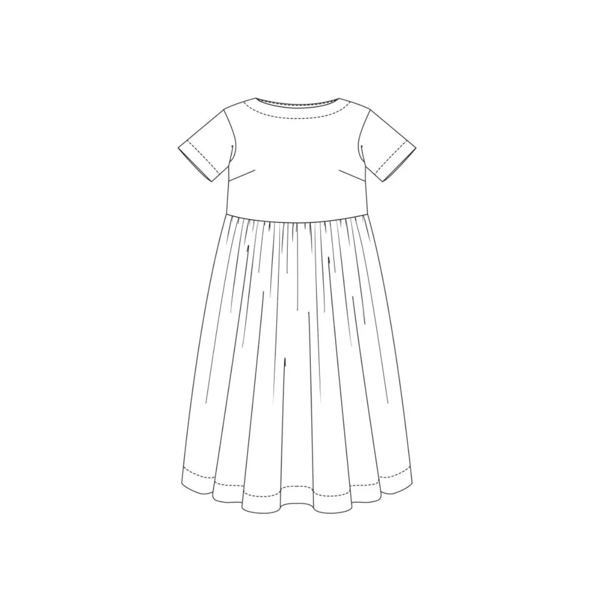This expansion pattern tells you how to change the Merchant & Mills Factory Dress, giving it a boat neck and gathered skirt.