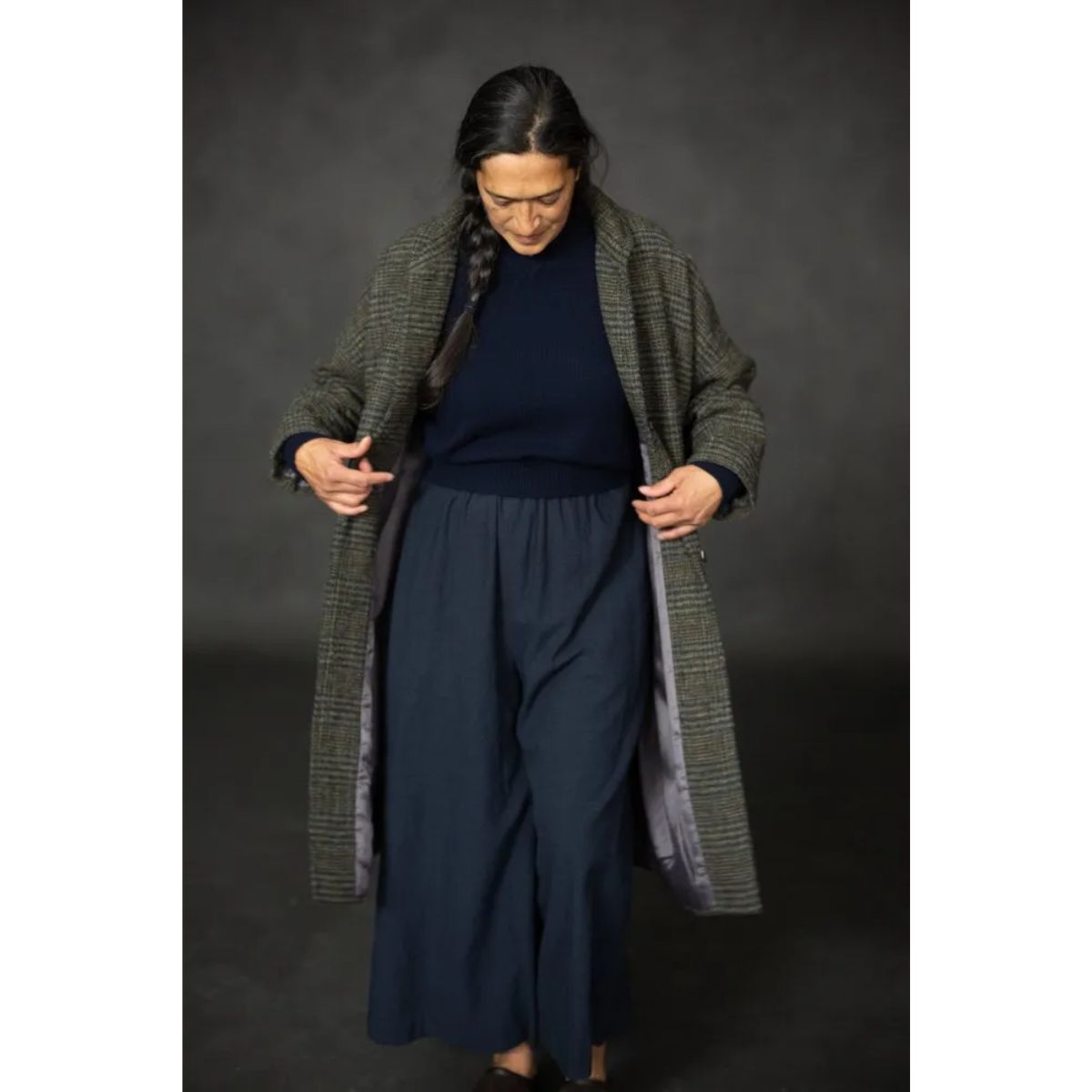 Dry oilskin, oilskin, linen, 7-12oz denim, wool, corduroy, cotton twill or canvas. A heaver weight cloth with result in a more structured coat. For linings we'd suggest our barrier lining if using an oilskin, otherwise - cotton voile, lightweight linen, cotton poplin, lightweight wool and slip linings.