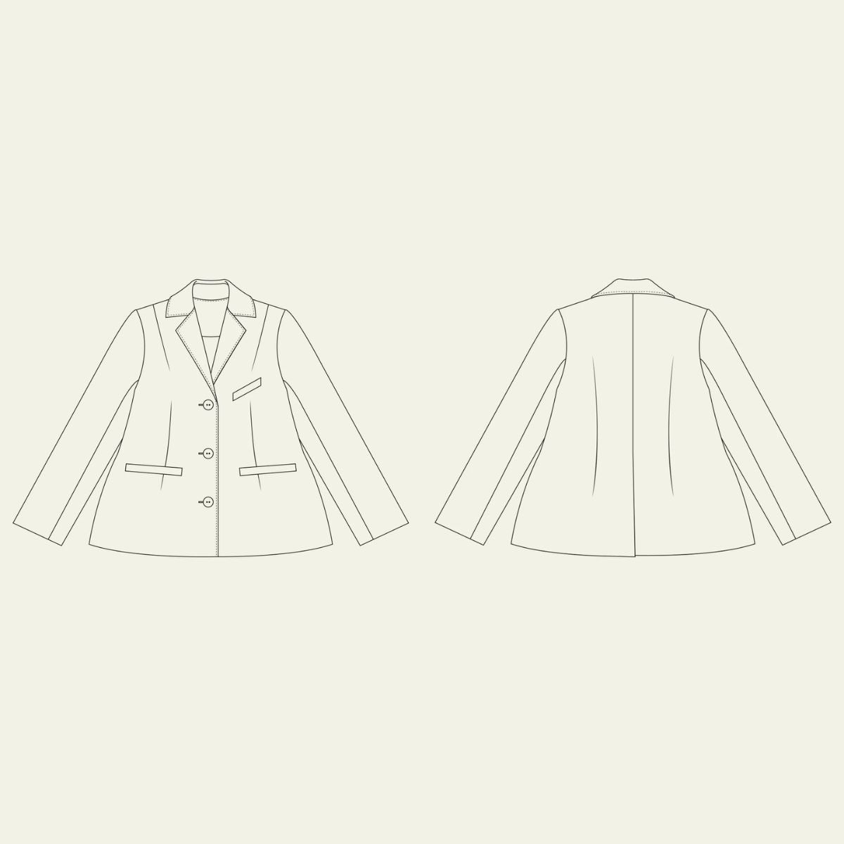 This pattern is recommend for intermediate sewers. Construction techniques: Welt pockets, sewing darts, collar and lapel shaping, adding a back vent, inserting a two-piece fitted sleeve, adding shoulder pads and sleeve rolls, sewing an outer shell and lining shell, slip stitching, buttons and button holes, pressing and topstitching.