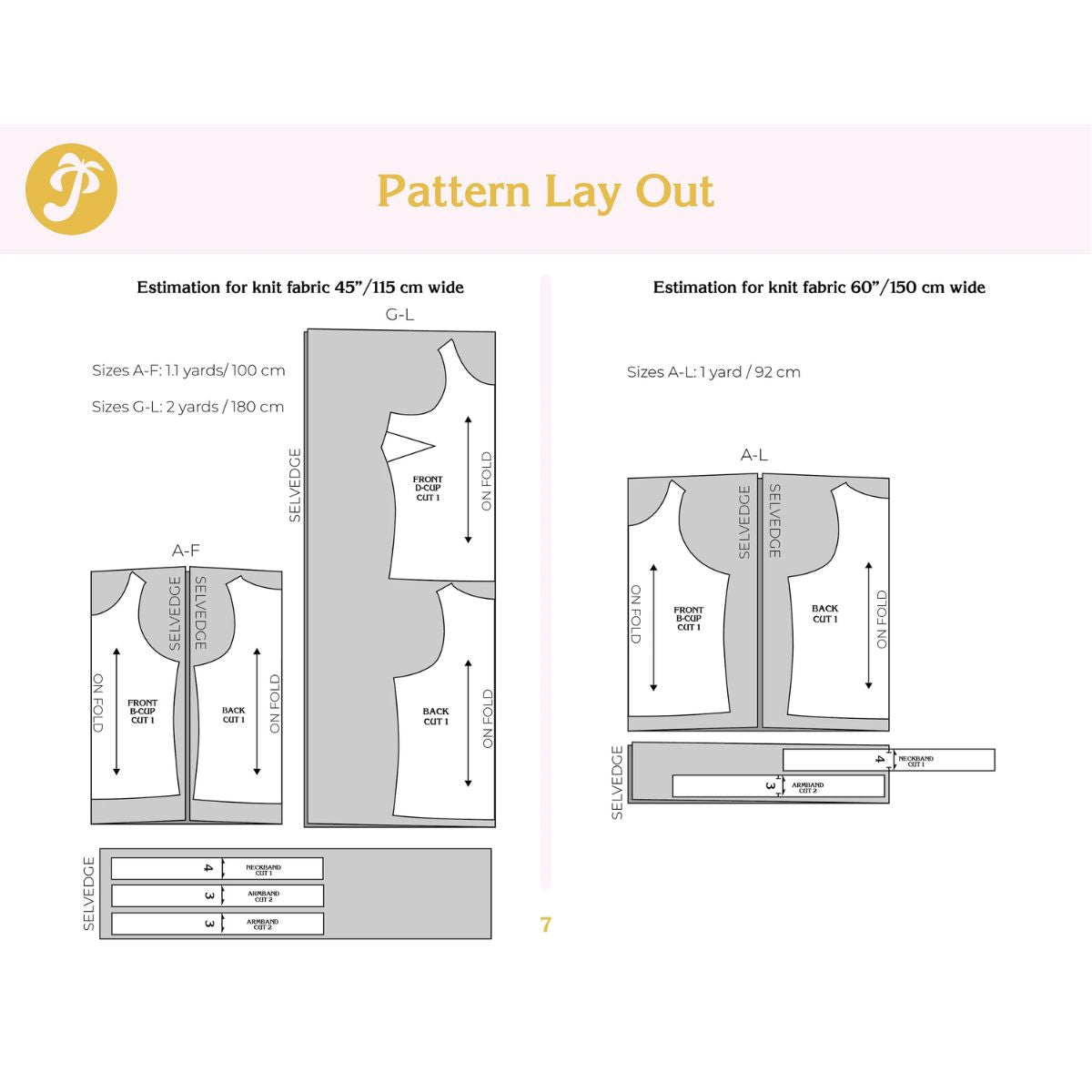 This top works great in a knit fabric with 40-80% stretch, your fabric should preferably contain some elastane/spandex. You will need also make the neck and armband with your main fabric.