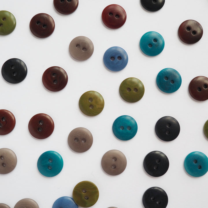 These 15mm Corozo Buttons are perfect for finishing garments.