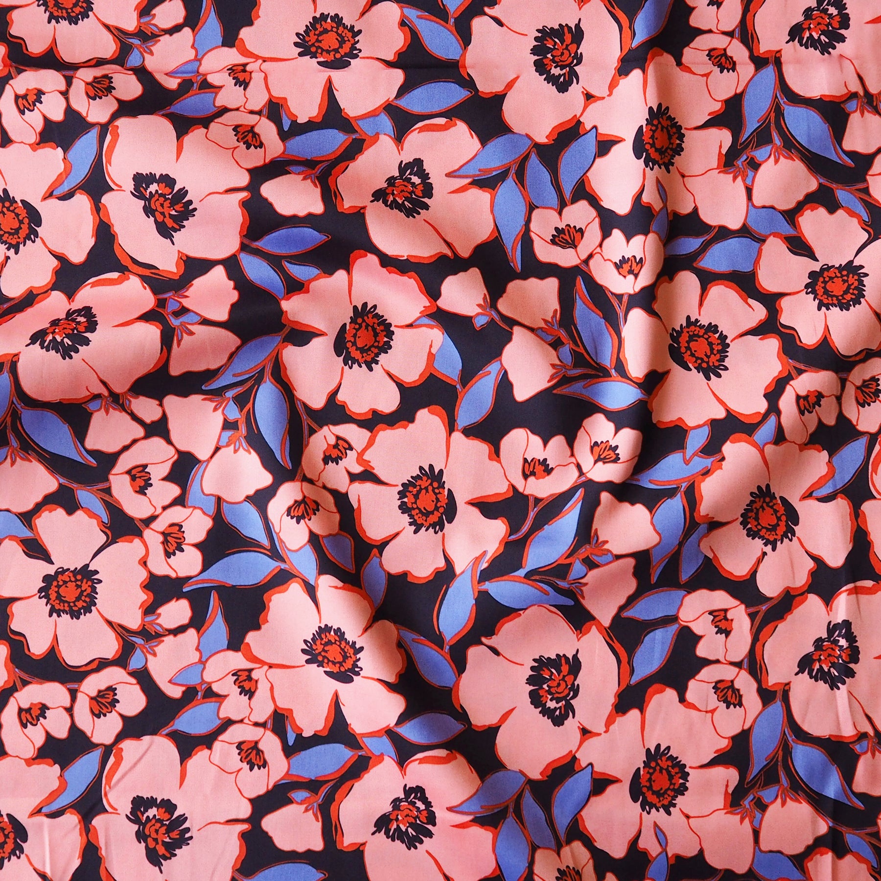 This Coral Floral Crush Cotton Sateen fabric combines a soft sheen with a vibrant floral design for elegant everyday wear.