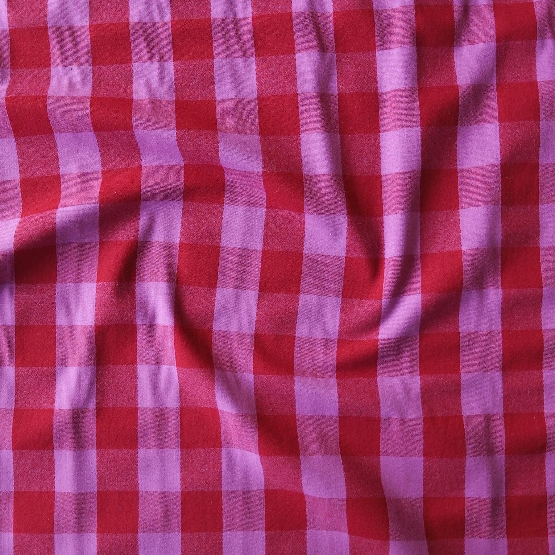 Fuchsia & Red Yarn Dyed Cotton Check Fabric