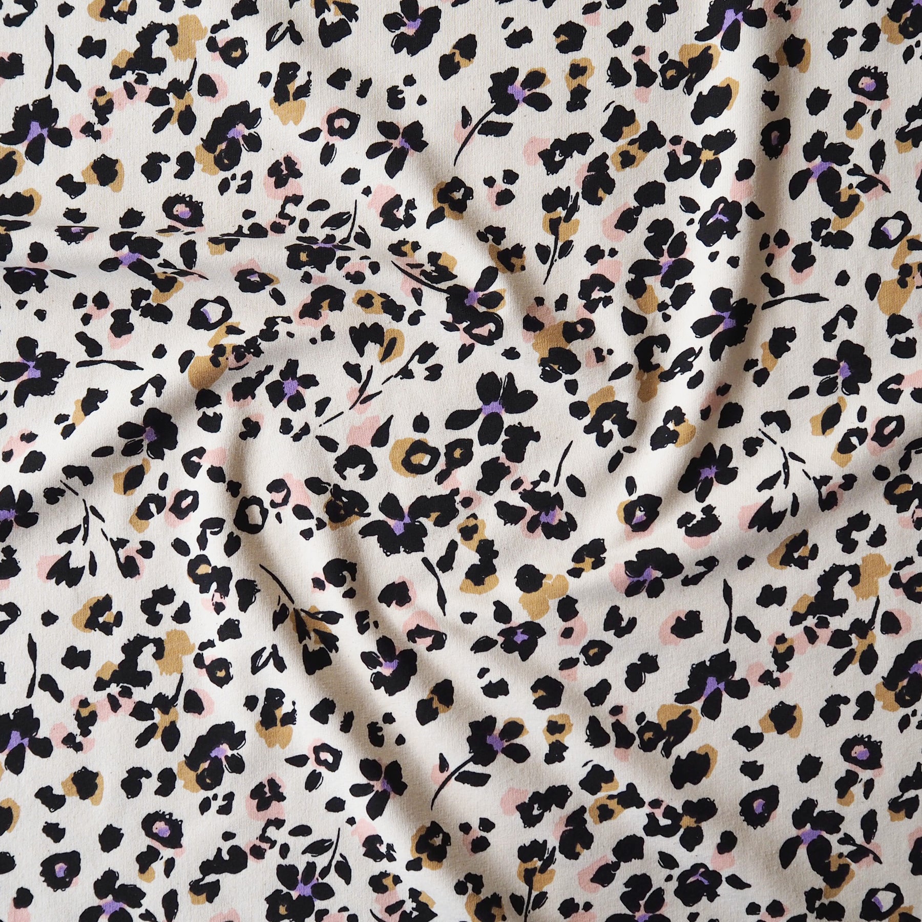 This Leopard Bloom fleeceback Cotton French Terry fabric combines a playful nature-inspired print with a soft, cosy handle - ideal for everyday comfort pieces.