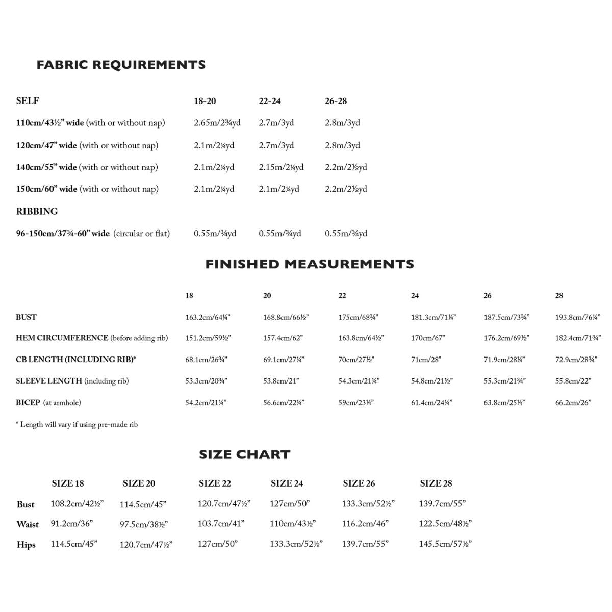 To get the structured boxy shape of Sidney, choose a medium to heavy weight cloth. Sweat shirting, jersey loopback and our cotton jacquards are ideal.