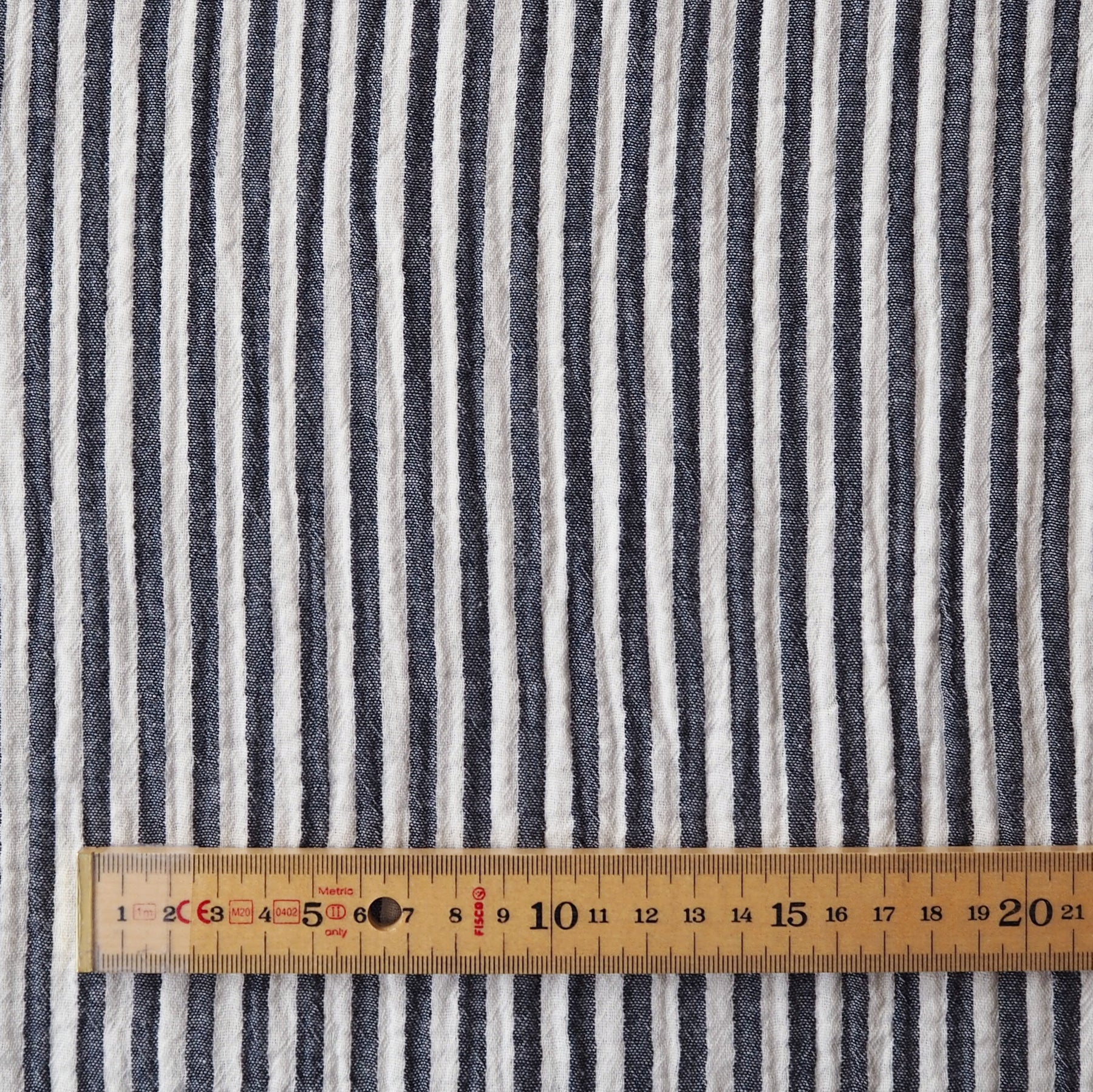 Navy Simple Stripe Yarn Dyed Cotton Double Gauze Fabric