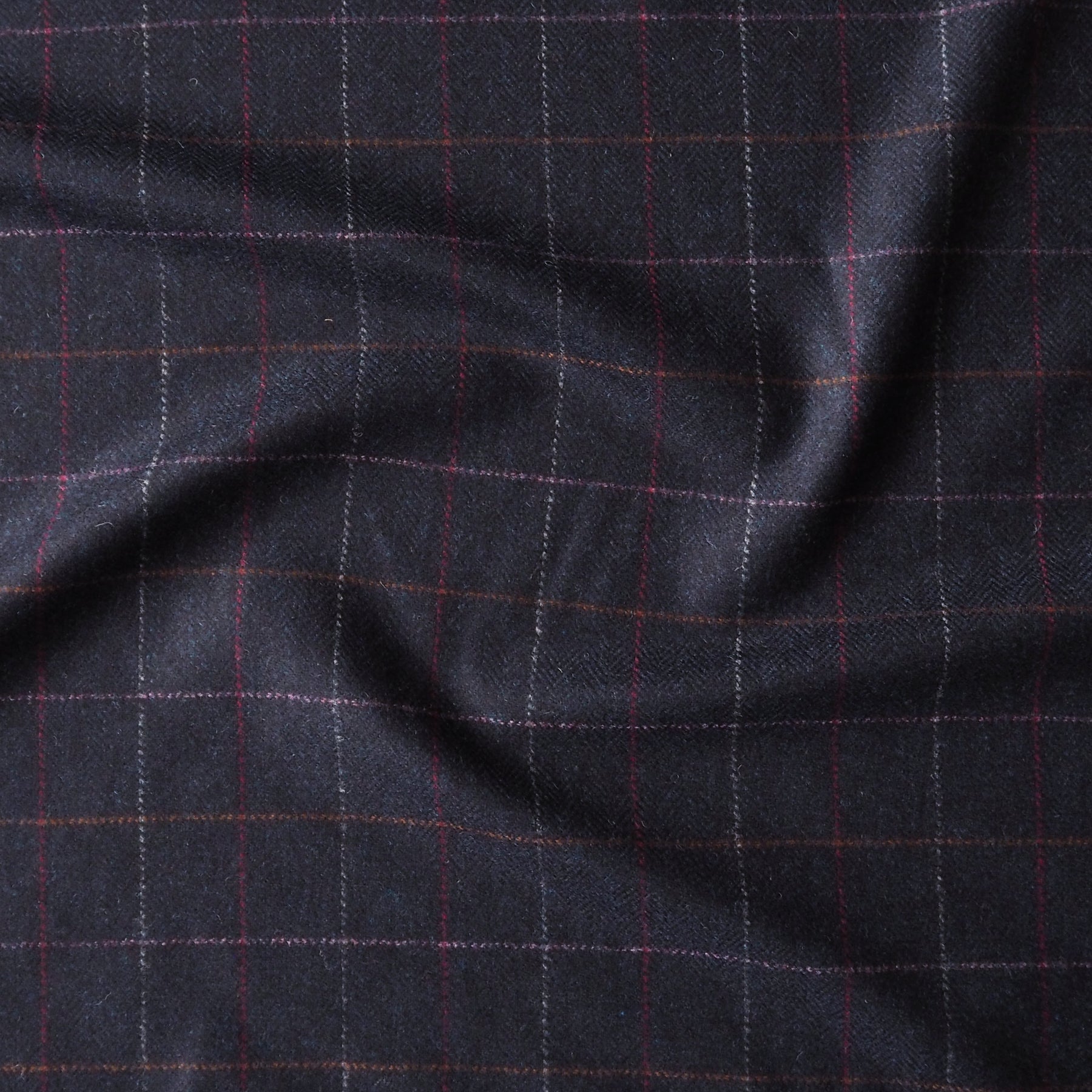 This beautifully woven pure wool has a sophisticated check design, perfect for creating a classic skirt with a heritage feel. It is an elegant navy blue which features a subtle grid of soft pink, rust and pale blue checks, giving it a refined and understated appearance.