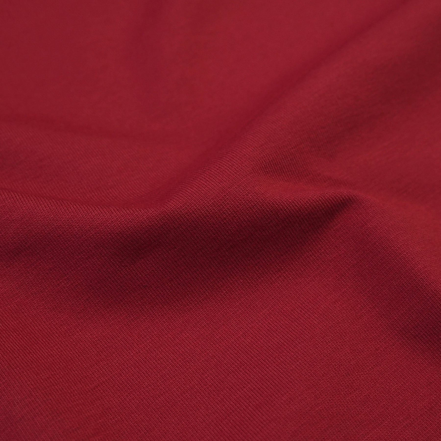 This cotton jersey fabric comes in a deep ruby red hue - rich, bold, and full of warmth. Its solid colour makes it a versatile wardrobe staple.