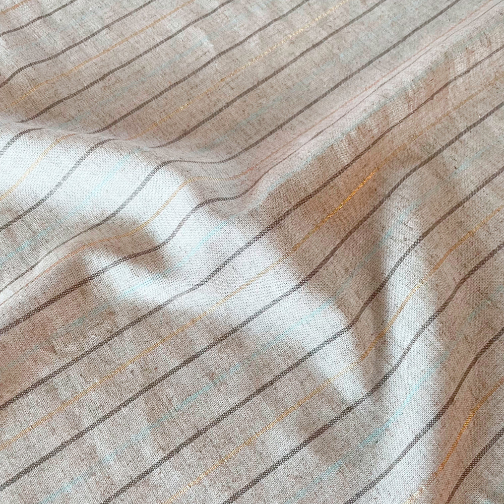 Please note that the stripes of the fabric run perpendicular to the selvedge, so you may need to turn your pattern pieces around if you would like the stripe running down your garment instead of across.